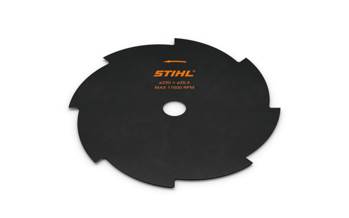 Tarcza tnąca do trawy, wykonana ze stali, z 8 ostrzami. Zastosowanie: do koszenia twardej, suchej trawy, gęstych zarośli. Nadaje się również do wycinania trzciny i krzewów. Stosować wyłącznie z osłoną uniwersalną.